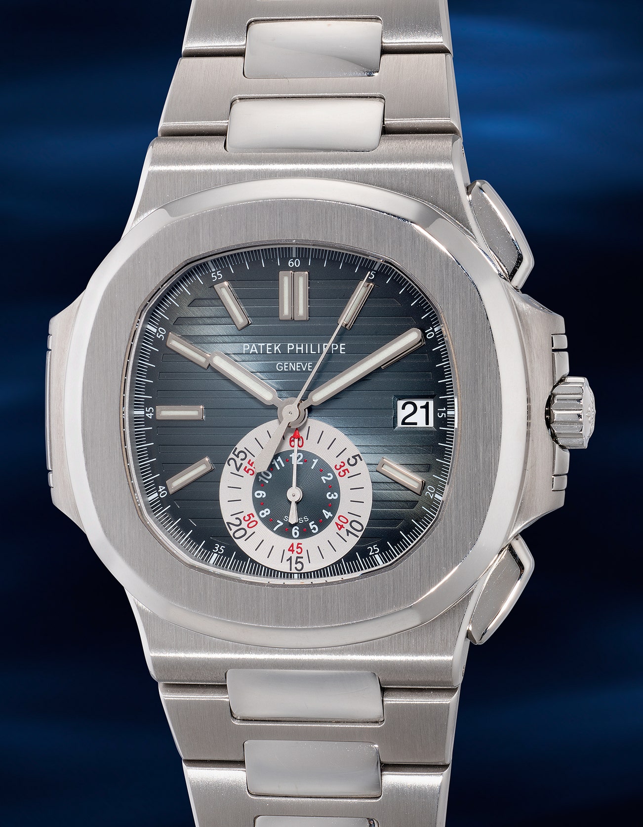 - Despite this innovative addition, the dial of the ref. 5980 retained the iconic Nautilus elements, including its ribbed design and a legible profile, while ingeniously combining the chronograph registers into a single "bull's eye" counter. The stainless steel versions of the watch were discontinued in 2014, further heightening the desirability of the reference and establishing it as one of the most coveted Patek Philippe Nautilus.