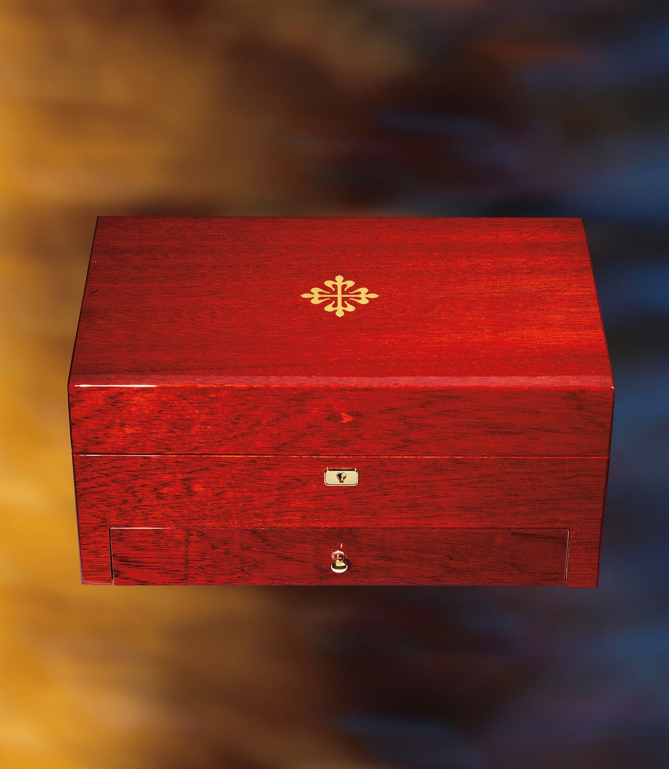 This present lot was meant to accompany the coveted set of four floral timepieces bearing reference number 5075G. It serves as an impeccable complement for any collector who desires to showcase their treasured possessions, offering not only beauty and practicality but also an undeniable vintage allure. There is a key for security, and a lower compartment for storing accessories.