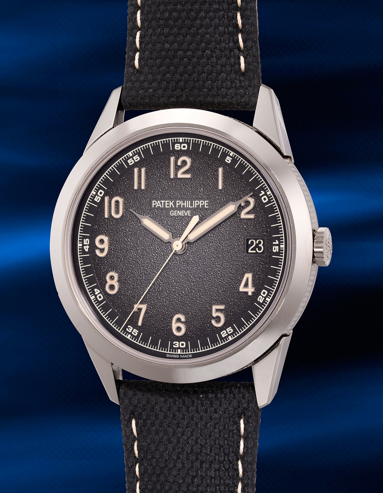 - Turning the watch sideways, on the caseband, one can notice a sublimely finished and quintessentially traditional clous de Paris hobnail decoration, an interesting and well appreciated element. Defined as a "highly contemporary watch with a vintage style", as Patek Philippe goes on to describe it, the textured dial features a gradient black minute track that seamlessly contrasts with the beige filled applied Arabic numerals and syringe hands, giving a typical tool watch attire to the timepiece.