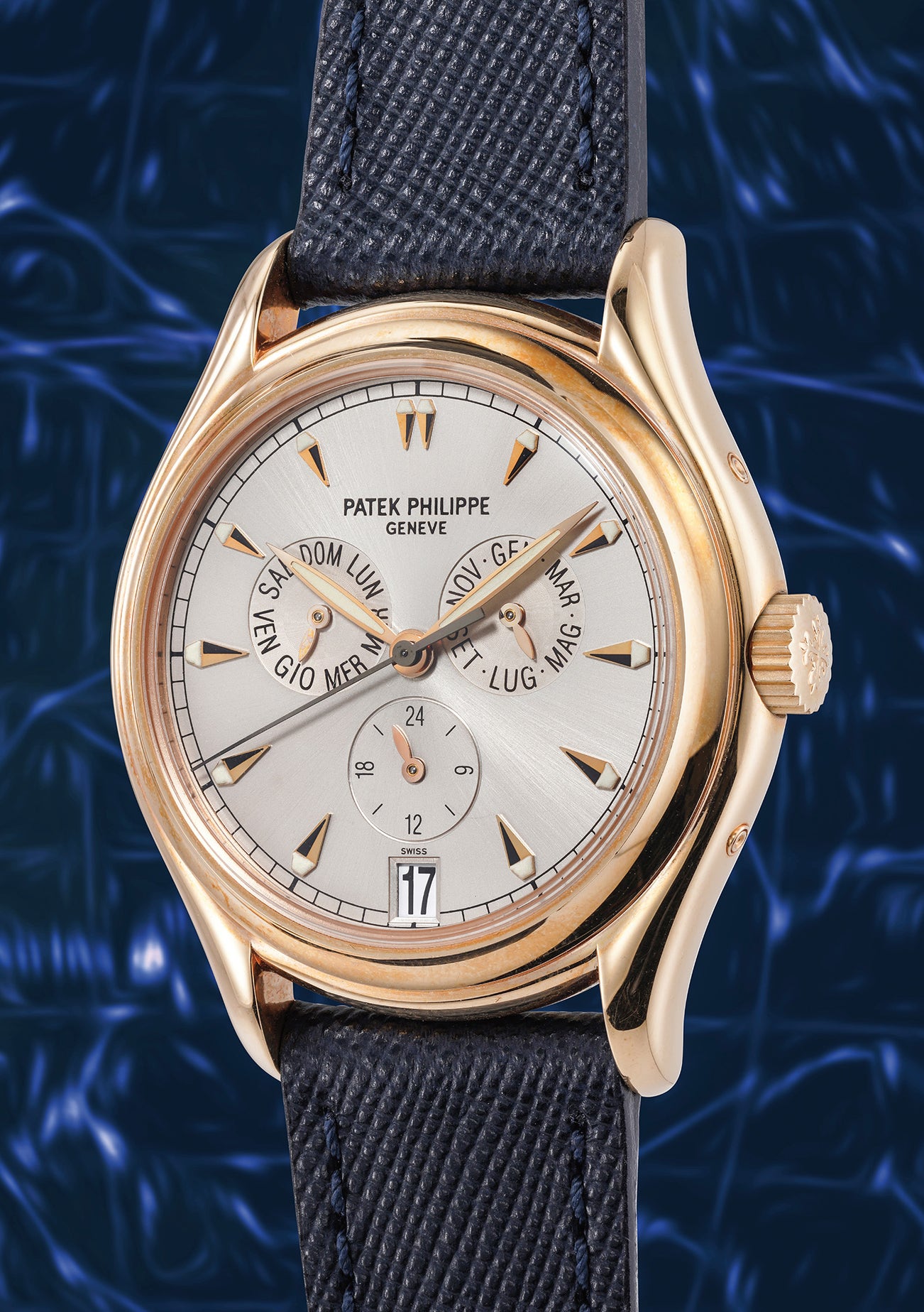 The present example is an exceptionally rare limited edition, numbered 71 of just 100 pieces to commemorate the 100th Anniversary of "A.C Milan" in 1999. Crafted in pink gold, this milestone timepiece is a celebration of both horological and sporting history. Preserved in excellent condition, it is accompanied by its original accessories, including a special edition fitted presentation box engraved "1899-1999". A true blend of elegance and innovation, this ref. 5035 is a remarkable opportunity for discerning collectors.
