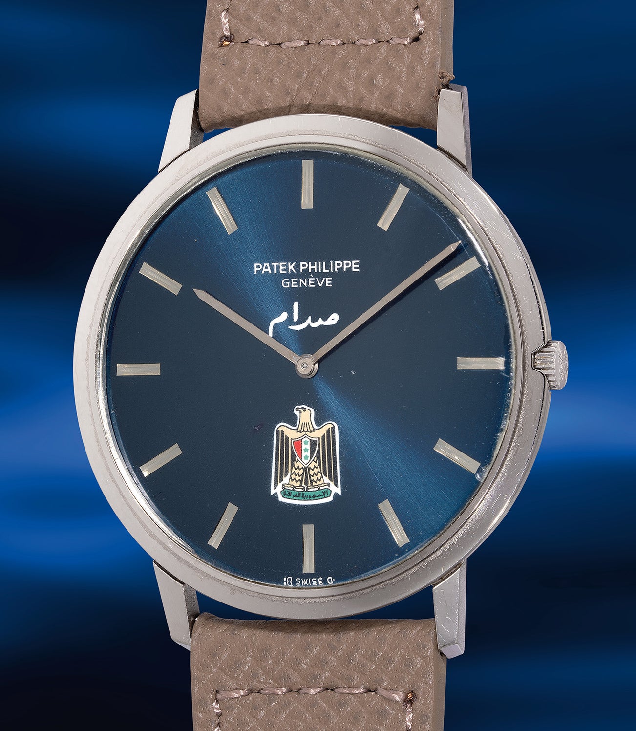 These rare Calatravas and Ellipse bearing the Iraqi Eagle coat of arms and their ruler’s signature were given by the regime’s highest ranking members as gifts. Boasting a well-preserved case with razor sharp edges and crisp hallmark on the caseback, according to our research approximately 44 examples of a ref. 3558 in white gold have surfaced in the market, and to the best of our knowledge, so far only this example bears the Iraqi Emblem and signature making it exceptionally rare. Furthermore, an Extract from the Archives confirms it date of manufacture in 1974 and later sold in 1981.