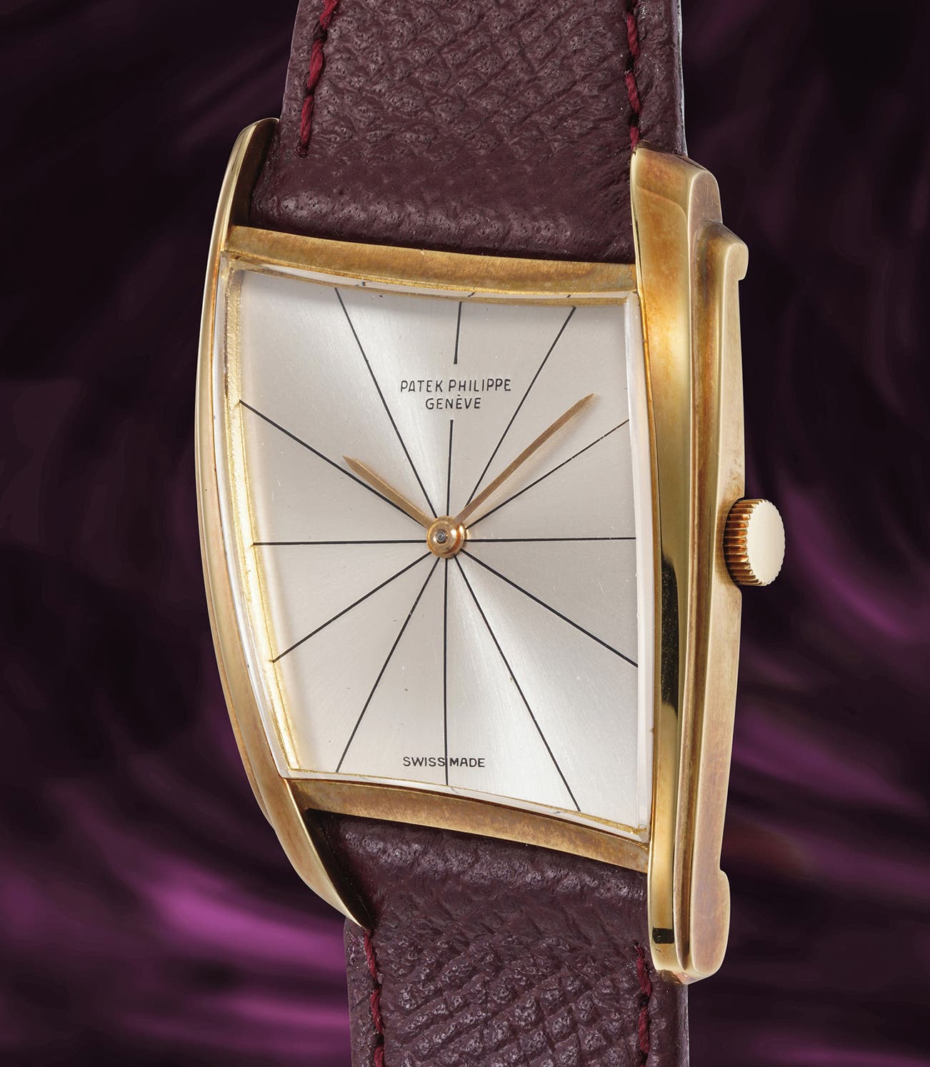 There are few wristwatch models that have achieved a cult status like Gilbert Albert's Patek Philippe designs. Having resided in a private collection for many years, this watch is believed to be one of only 24 examples of reference 3424 in yellow gold with sector lines to have ever graced the auction market. With a crisp hallmark on the lug, the watch has been preserved in excellent condition.