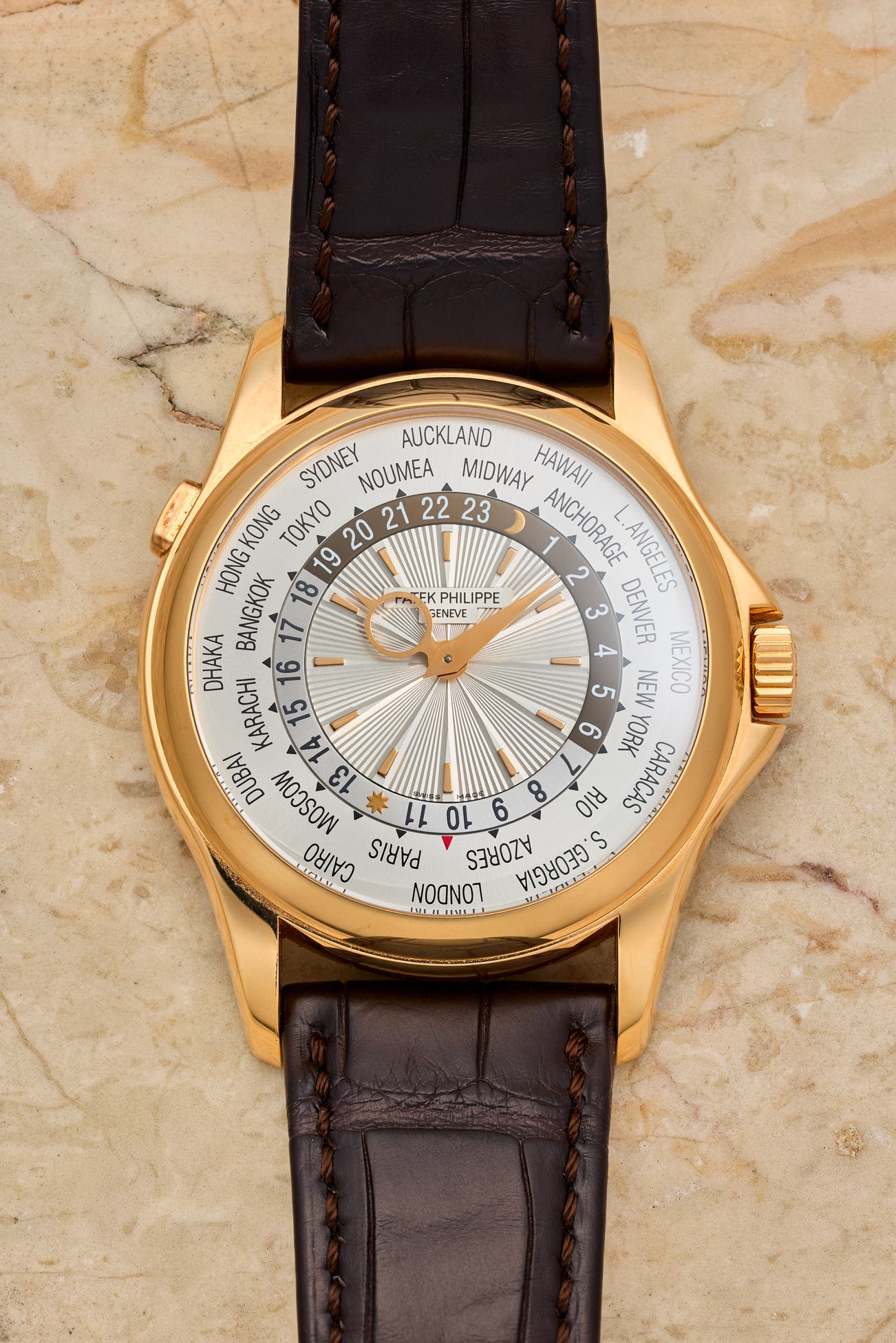 • Regarded by collectors as one of the most iconic Patek Philippe complications, the World Time was initially developed by Louis Cottier in 1935 using inner rotating discs to indicate time in 24 cities covering all time zones.