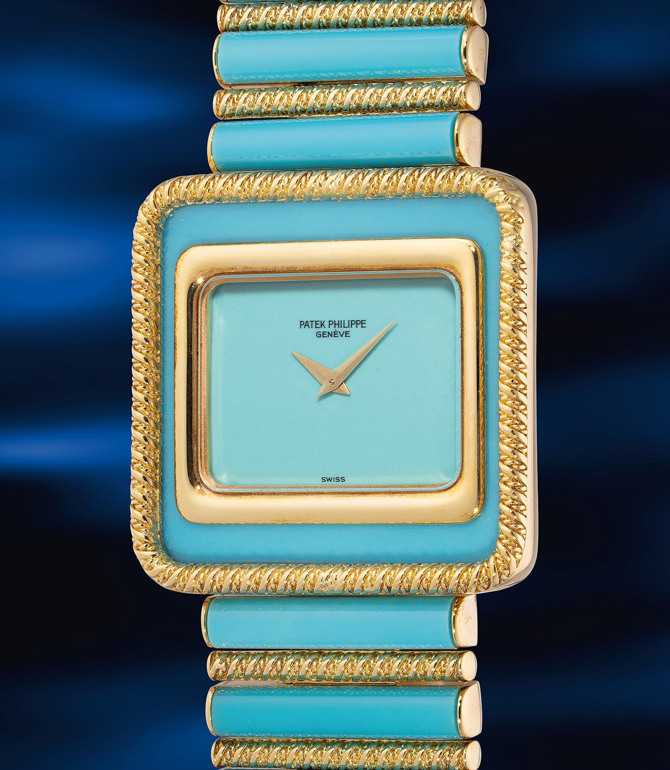 The exceptionally rare ref. 4291 was introduced in 1976, and to date, no known examples have appeared on the market. Strikingly unconventional and possibly unique, the present timepiece is a bold expression of the creativity and flamboyance of its time. Likely commissioned by a distinguished client, the turquoise-set dial, bezel and bracelet form a visually captivating ensemble that invites a second glance. As indicated by the “key number 5” mark inside the caseback, the case of the present timepiece was made by George Croisier, one of the important casemakers in Geneva. It is noteworthy that the watch was sold eleven years after its production in 1989, a significant year for Patek Philippe as it marked the brand’s 150th anniversary. Fully supported by the Extract from the Archives, this timepiece represents a rare and exceptional opportunity for collectors seeking something truly distinctive.