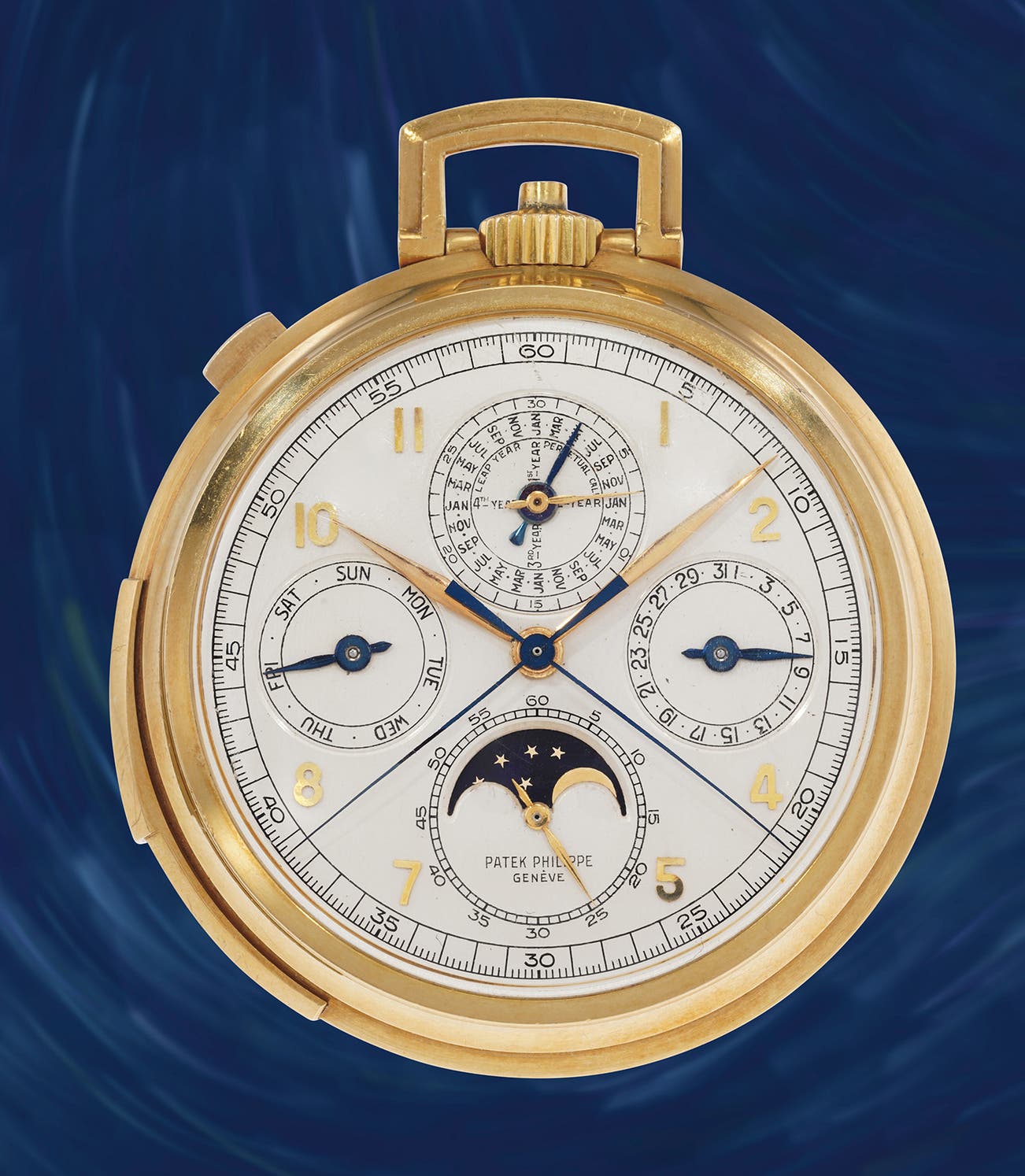Heavy and remarkable, reference 658 was at the time of production one of Patek Philippe's most complicated serially produced pocket watches and a true Grande Complication as it features a perpetual calendar, a minute repeater with delightful chimes and a split seconds chronograph (considered to be one of the most complex complications to master).