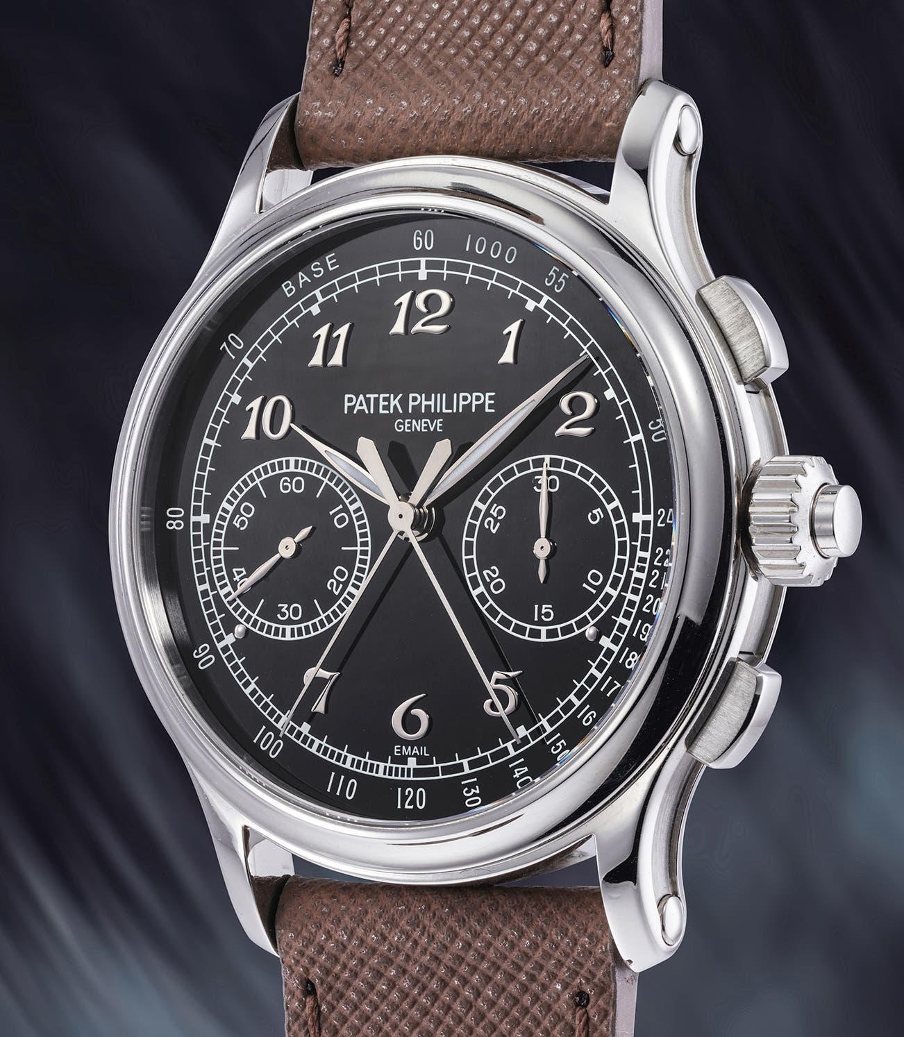 Made in extremely low numbers, the reference 5370 is a resolutely modern watch but with hints of vintage in its design. A proud heir to Patek Philippe’s prestigious chronographs of the past the present reference is set to become one of the brand’s icons of the future. The present example, in superb condition, is further accompanied by its full set of accessories.