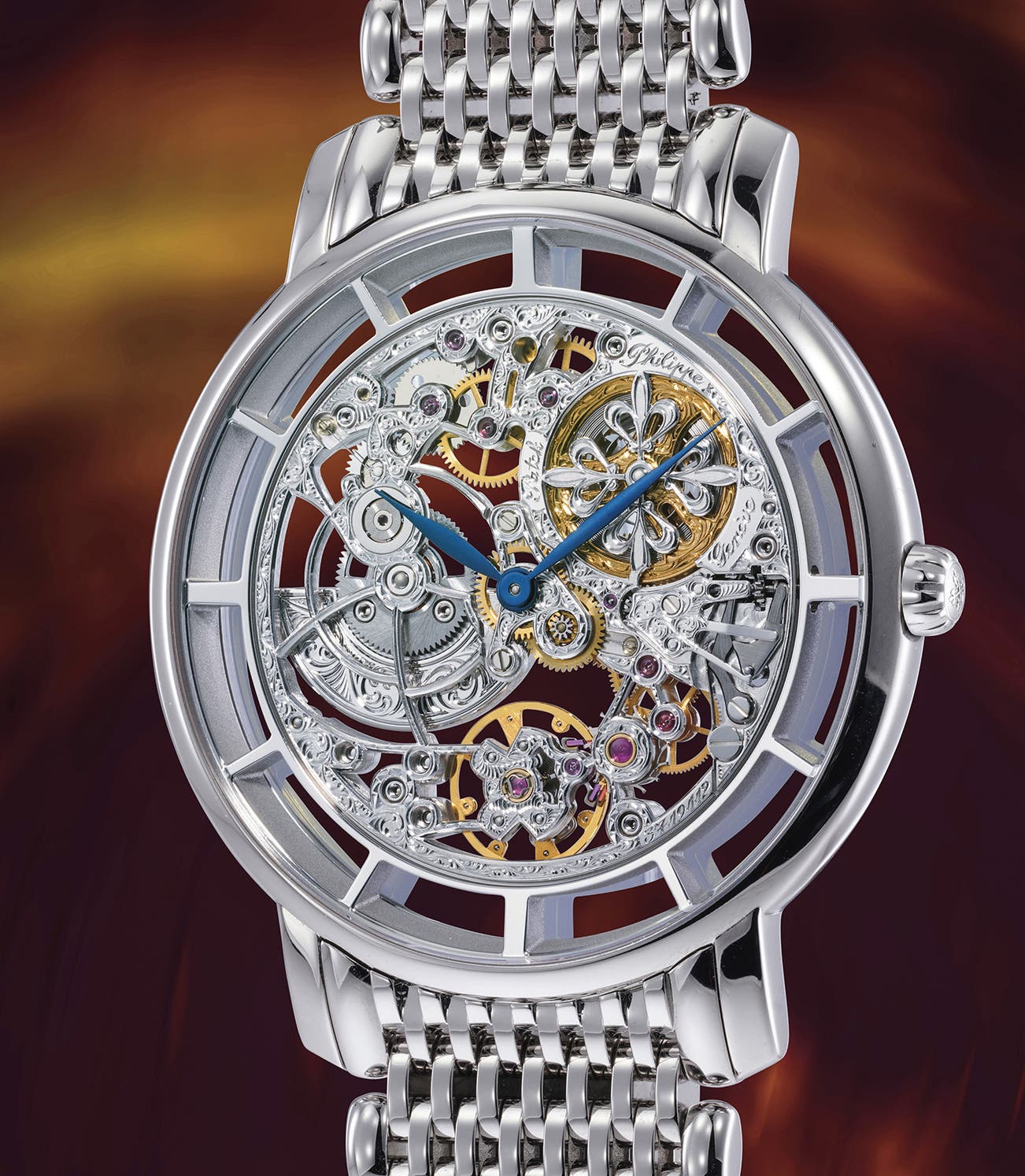A rare and "new old stock" white gold skeletonized wristwatch with bracelet and original certificate