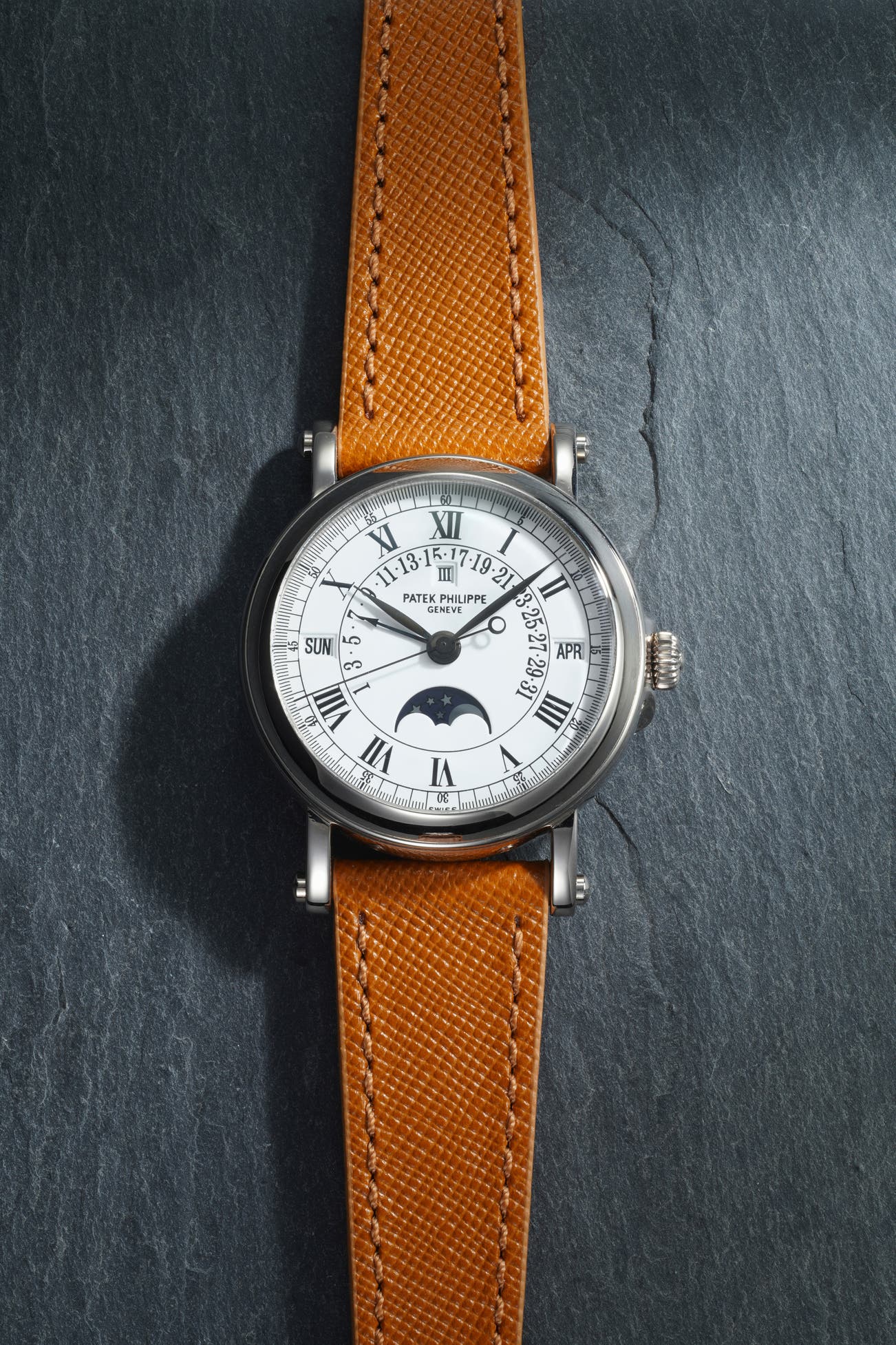 - Presented in excellent overall condition with its Certificate of Origin stamped the Patek Philippe Salon in Paris, it is further accompanied by a special presentation box engraved with the Paris Salon address “10 Pl. Vendôme”, making this ref. 5059 in white gold even more collectible.