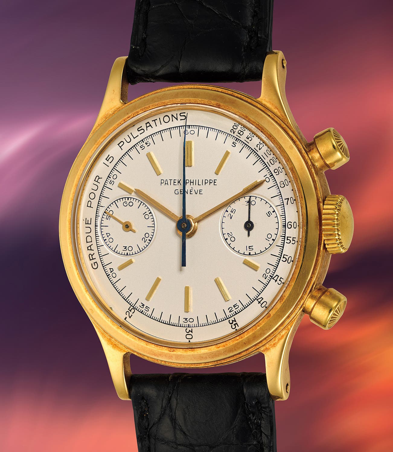 Originally sold in 1949, this reference 1463 previously appeared at auction in 1997 in this exact configuration. The dial is believed to be from the 1960s due to the omission of the outer railway minute track. One can assume that the dial most probably was changed by Patek Philippe in the 1960s during a service when this extremely rare pulsations dial was fitted at the request of the then-owner.