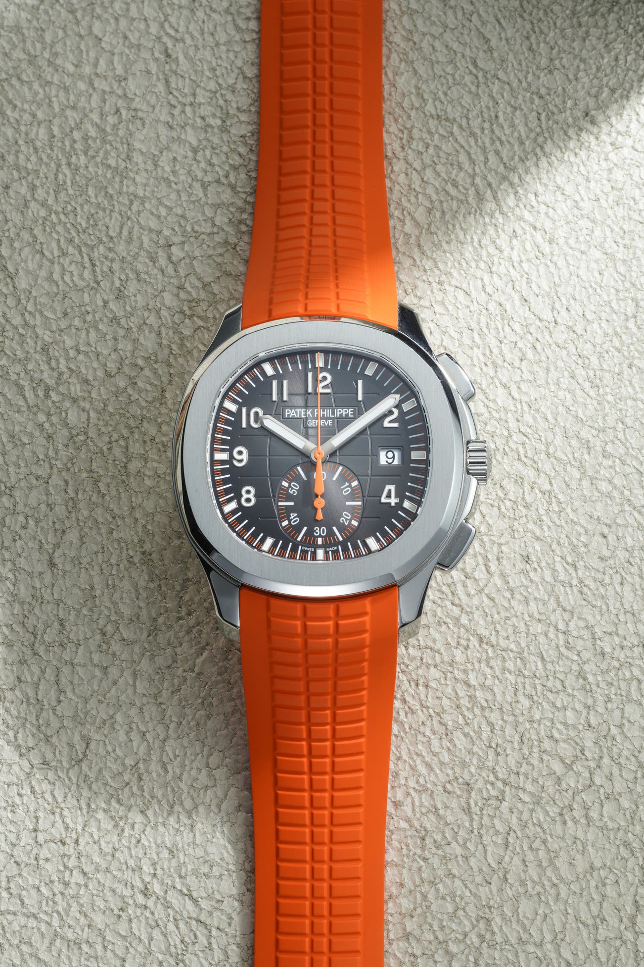 - Cased at 42mm in diameter, even with the addition of the two chronograph pushers, the case remains intact and compact. Sporty yet well balanced inside the watch beats the well-known in-house calibre CH 28-520. Further featuring a flyback function, the movement displays all the classical Patek’s delicacies, such as the Gyromax and Spiromax technologies, as well as the Patek Philippe Seal.