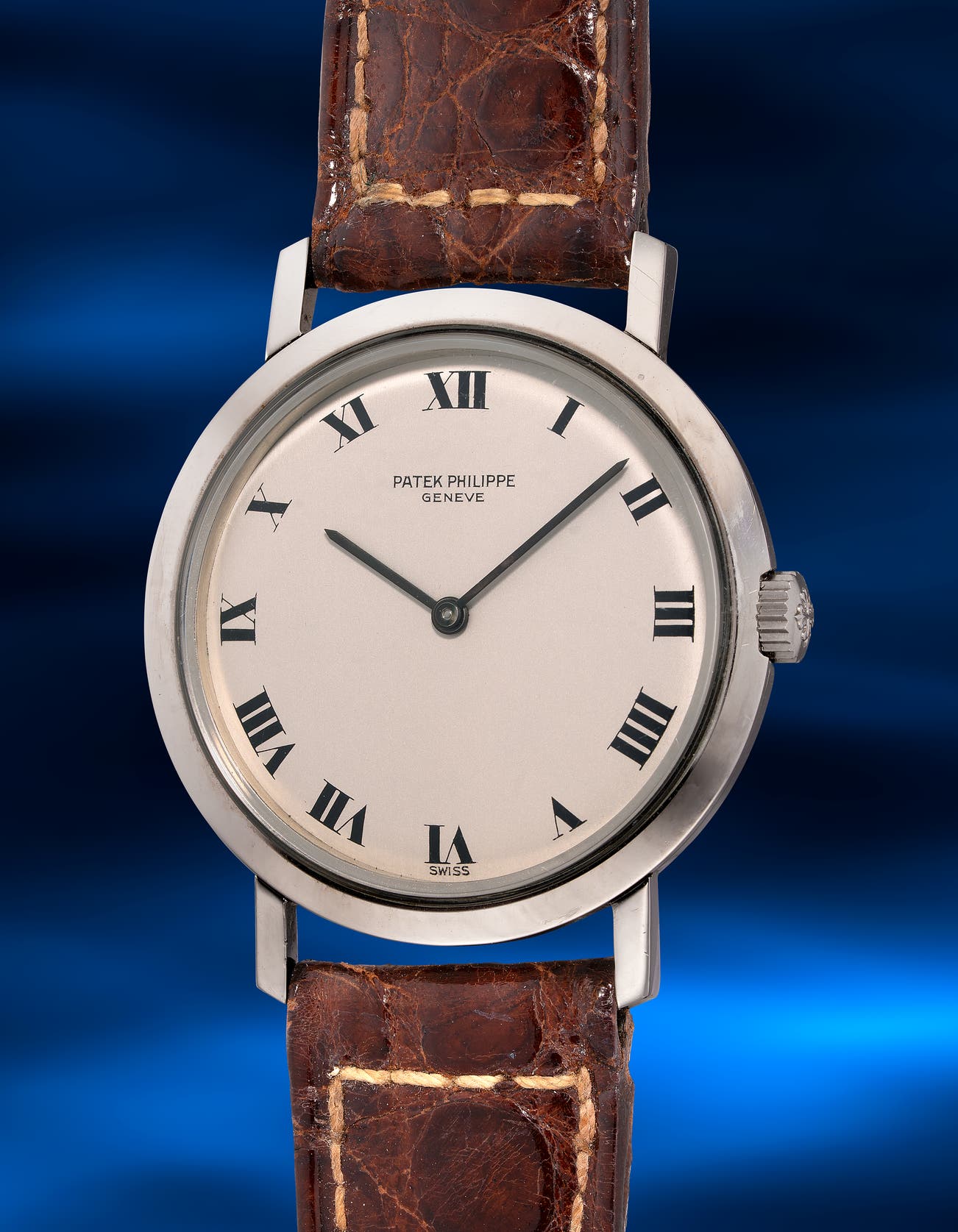 - In addition to its rare material, the ref. 3509 is particularly desirable for its screw-down caseback, a notable departure from Patek Philippe's more typical snap-on casebacks. Featuring a manual wound movement and a simple silver dial adorned with black Roman numerals and sword-shaped hands, the ref. 3509 finds its place in today’s horological landscape while its classically styled dial serves as a reminder of its storied heritage.