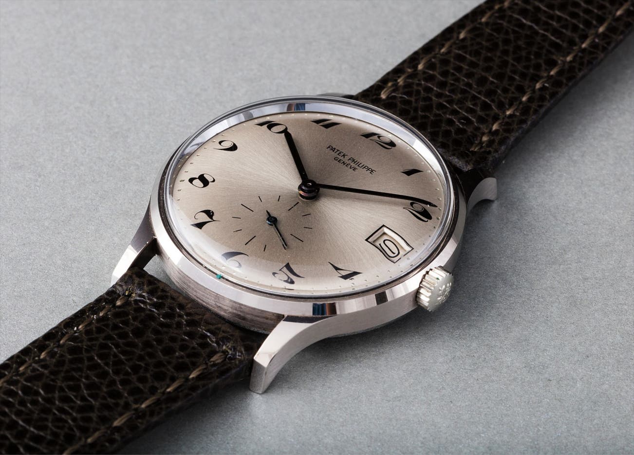 What makes this watch particularly rare is the combination of the dial and hour markers. Typically, the dials of the reference 3514 are fitted with baton hour markers, whereas this rare gem is presented with black Breguet hour numerals on a stunning silvered, sunburst dial.