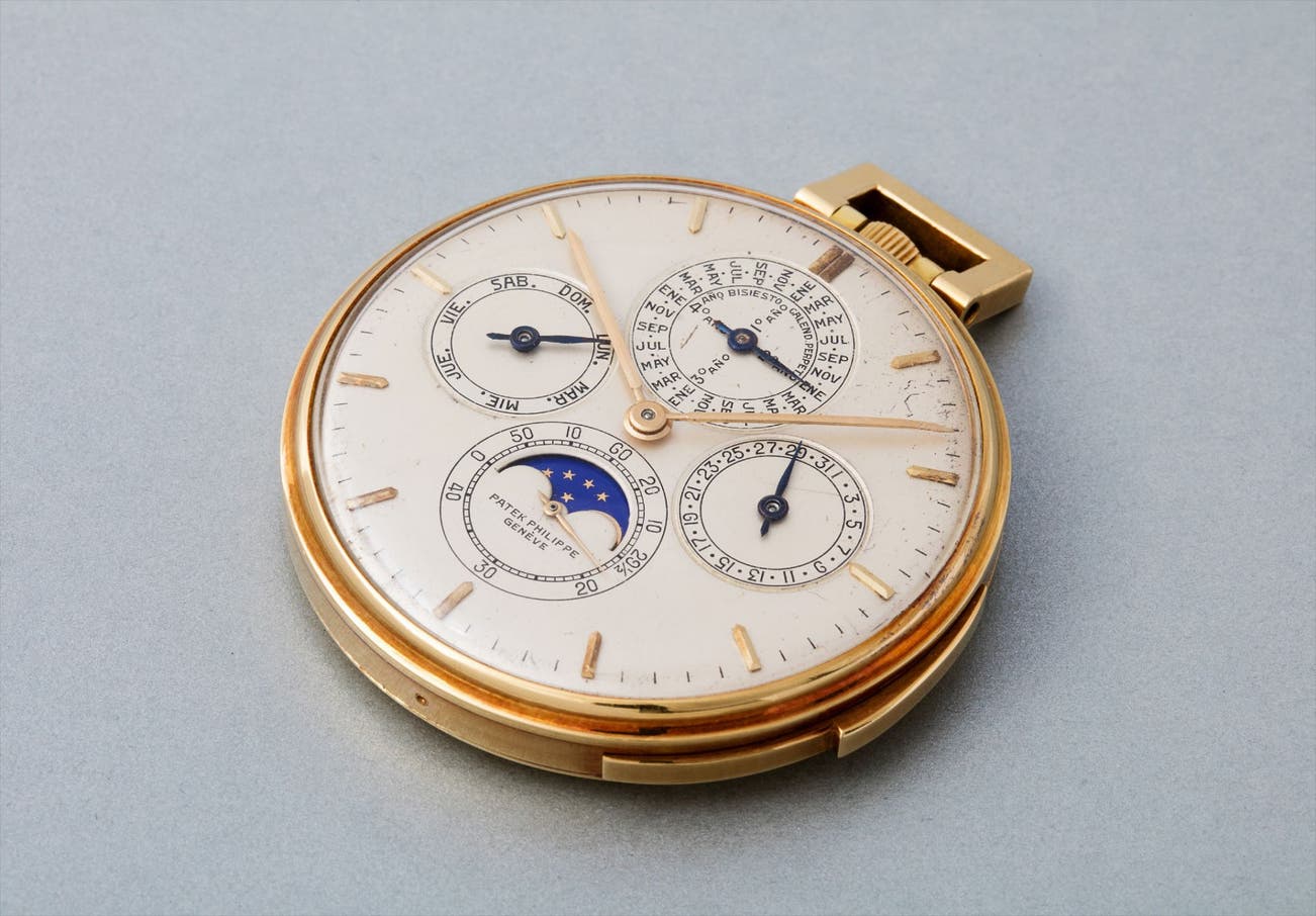 Only six reference 699 models are known to date, and the present lot has the particularity of not only being fresh to the market appearing in an auction room for the first time, but also, it is the only one known to solely feature lapidated indexes on the dial. All other reference 699 models feature a mix of Roman numerals and baton hour markers. Another notable feature of the present watch is the rectangular shaped pendant, whereas reference 699 is found more with the bell-shaped pendant. With its combination of Patek Philippe’s most prestigious “grande” complications – the perpetual calendar and minute repeater – this incredibly rare timepiece is a wonderful example for collectors of Patek Philippe watches.
