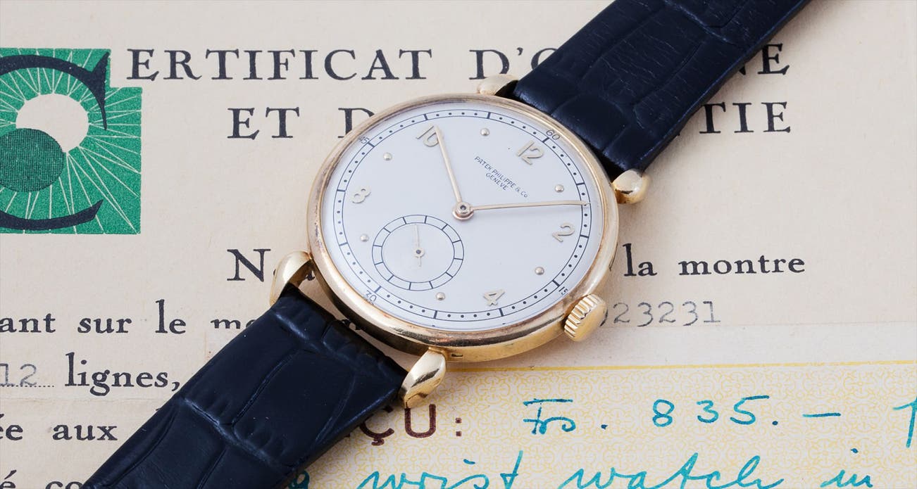This watch is presented in original, excellent condition, with crisp, well-defined hallmarks, appearing to have spent most of its life in the possession of a gentleman who took the utmost care of his timepiece. Presented with its original Certificate of Origin as well as its original Patek, Philippe & Co envelope, and even the original hand written receipt of CHF 835.- dated July 1943, this watch will certainly appeal to a connoisseur of fine collectors’ timepieces.