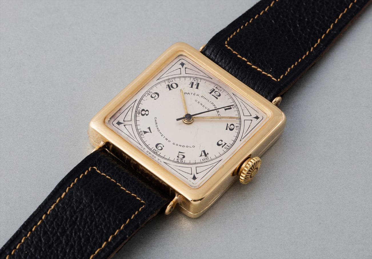 Its masculine square case impresses with its geometric, but softly rounded lines, featuring a hinged caseback. The present example is one of just nine watch models known-to-date that were commissioned by the owners of Gondolo & Labouriau. To date, scholarship only accounts for two Patek Philippe Gondolo & Labouriau wristwatches with center seconds, and the present example is the only one housed in a square case. The other one is fitted in an officer style case. All Gondolo & Labouriau wristwatches were equipped with movements of the highest finish, meeting the exact requirements set by the Brazilian firm: three wheels and wheel train made in 9 karat gold, cam-wheel regulator, moustache lever and mainspring barrel arbor fitted with a pierced socket. These characteristics were often found in the high-end, ébauches movements supplied by LeCoultre, of course later finished by Patek Philippe to their highest standards. The watch’s silvered dial has a wonderful shine and both the signature and minute markings are ahead of their time giving off an Art-Deco vibe in black enamel.