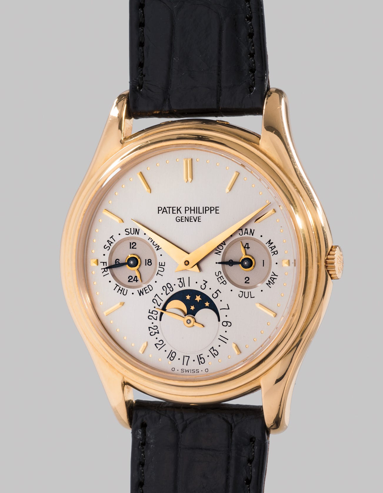 The present watch is part of the earlier series, featuring sunken subdials. In excellent condition and accompanied by its original Certificate of Origin, the present lot offers a unique opportunity to own not only a very rare reference, but also one of Patek Philippe’s very early modern perpetual calendars.