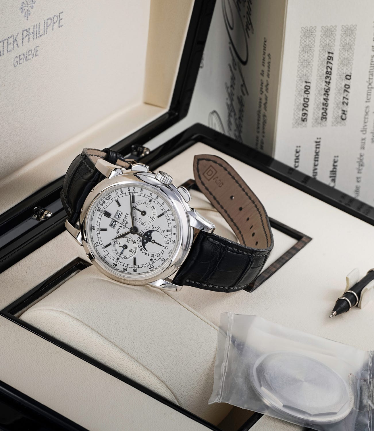 Complete with fitted box, second caseback and original certificate the present 5970 is in excellent condition and worn with great care by its previous owner.