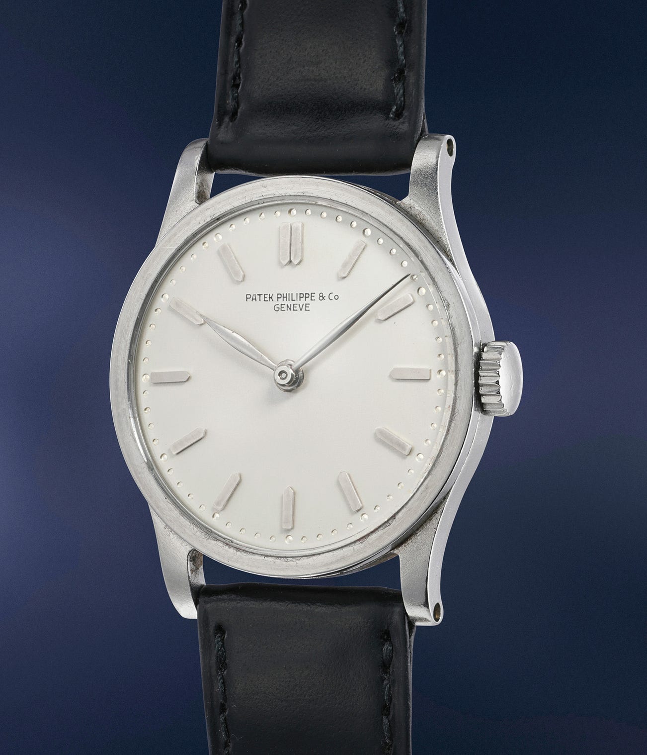 While the model was usually cased in yellow gold or pink gold, this is a very well-preserved stainless steel variation. Patek Philippe were, already back then, important and costly timepieces, so most of their production was (and still is) in gold. Stainless steel pieces are notoriously much scarcer, which compounds to the rarity of the "no-second" variation: so far, only 15 examples of this combination are known to scholars.