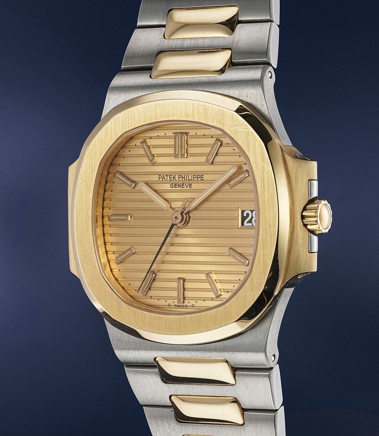 This attractive and exceedingly well-preserved stainless steel and yellow gold example displays a champagne dial, which is confirmed by the Extract from the Archives. It is preserved in excellent condition with crisp bevels and sharp edges throughout and is even accompanied by its original case back sticker and presentation box.