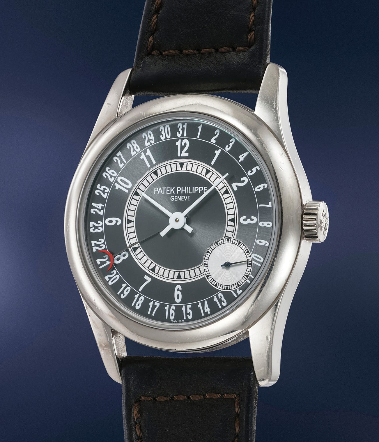 In 2005, Patek Philippe introduced the Calatrava ref. 6000, first fitted with a glossy black dial and encased in white gold. Other iterations were launched, featuring various case materials such as pink gold and various dial colours such as grey and brown. The present version is cased in white gold and displays a striking grey dial. Offered in excellent condition, it is also accompanied by its certificate of origin and presentation box.