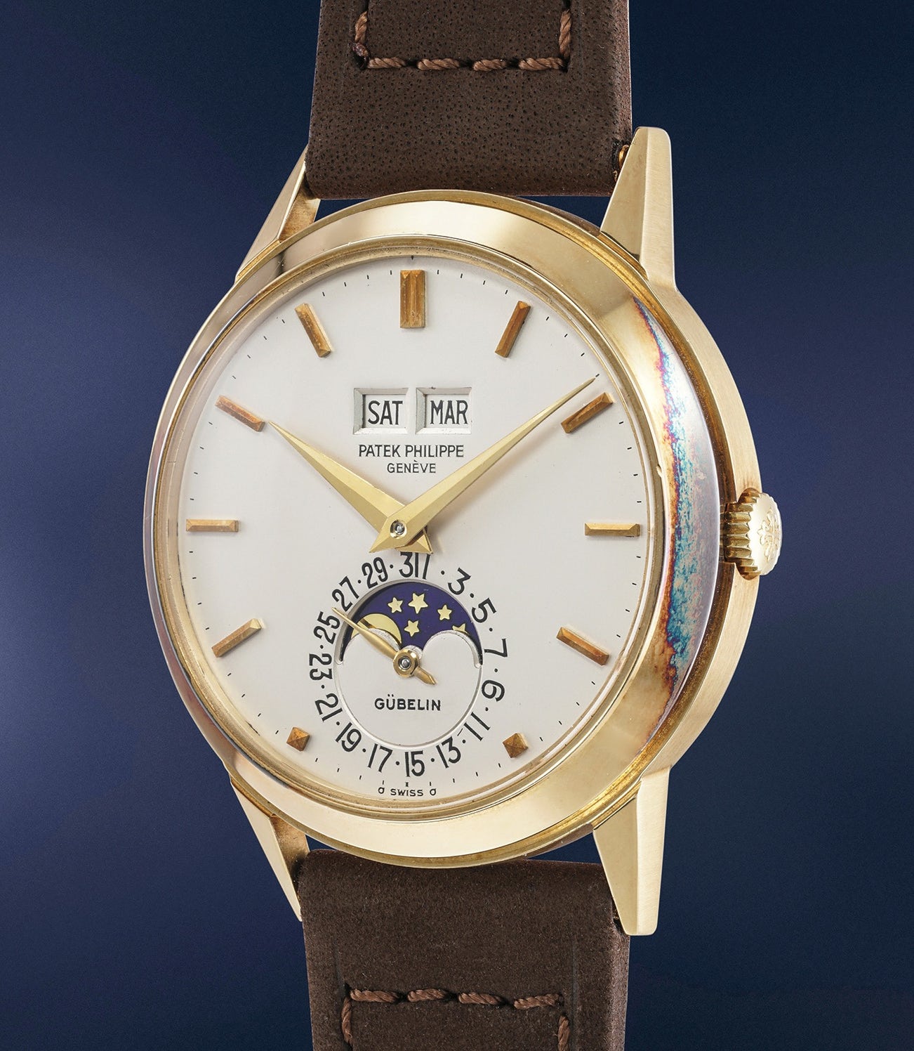 The present example’s desirability is heightened by the Gübelin signature at 6 o’clock, making it only the 12th reference 3448 with the Gübelin signature to appear on the market so far.