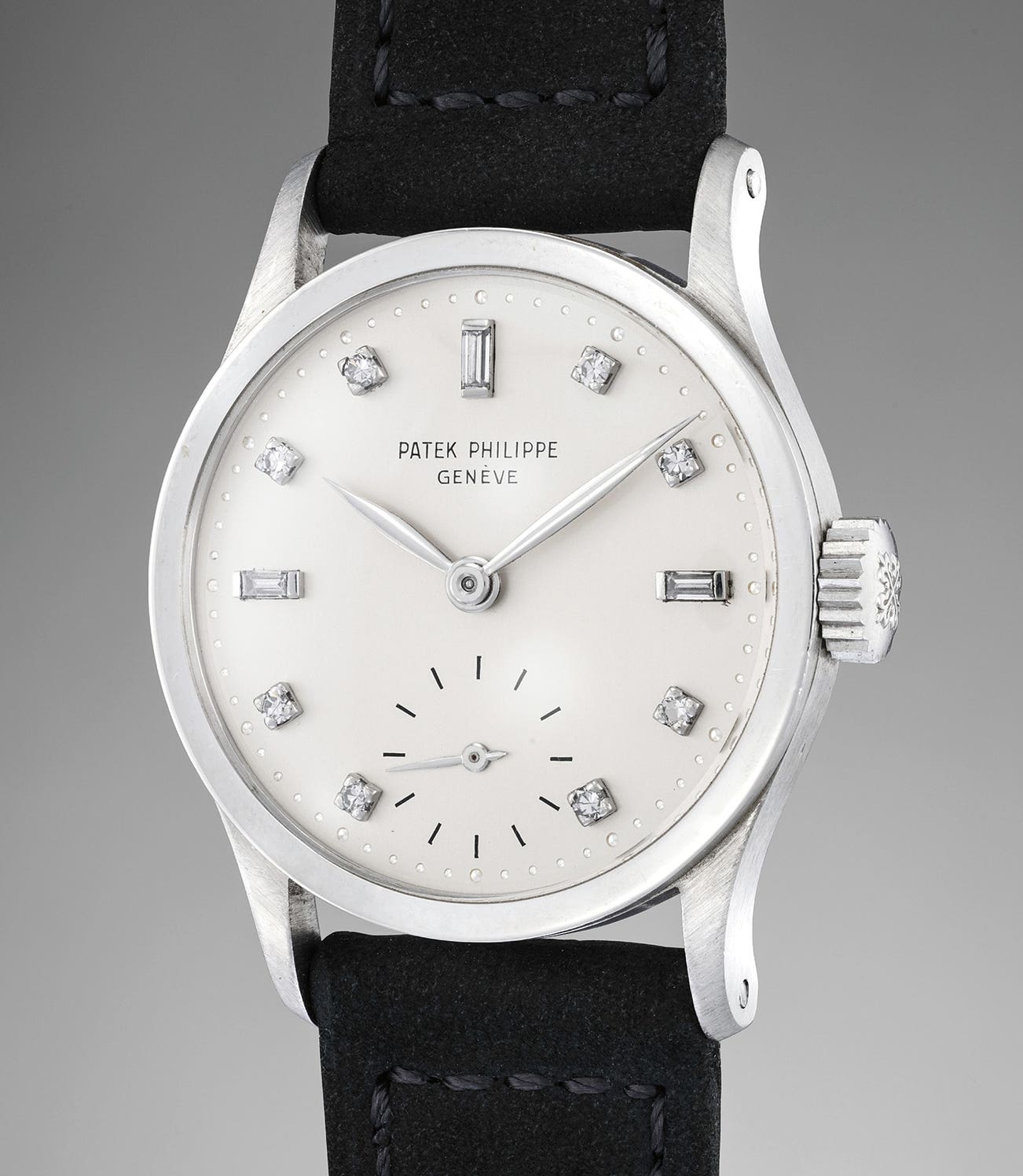 In production from 1932 until 1973, reference 96 was most often cased in yellow gold, as well as in stainless steel steel, pink gold, white gold and more rarely, in platinum. The present model in platinum with diamond indexes is one of the most exclusive versions of this iconic reference as it is one of only 40 known in this configuration.