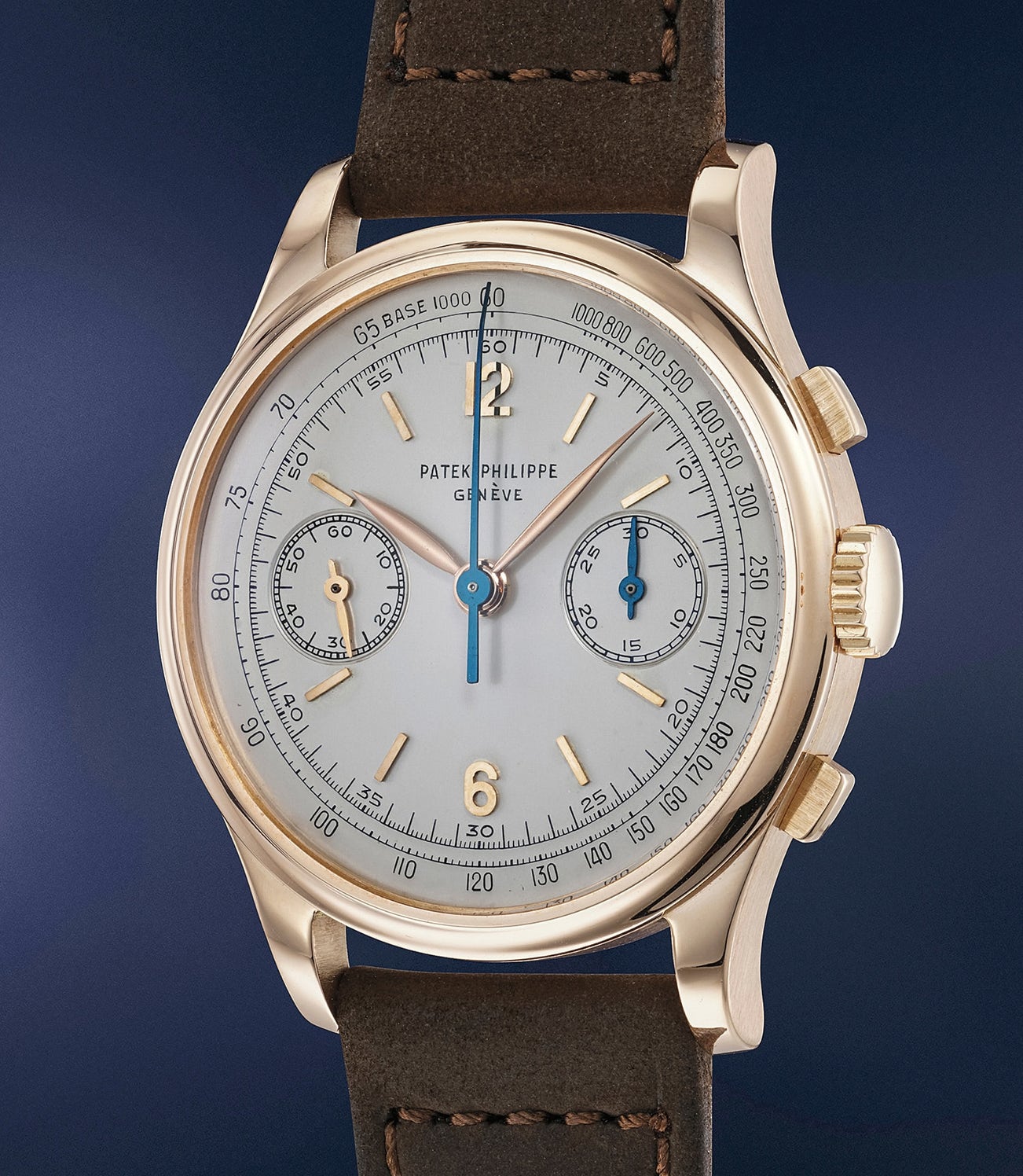 The present watch is cased in pink gold, which is much rarer than its yellow gold sibling. Research shows that we only know 16 examples of reference 530s cased in this precious metal, with an approximate total production number of 30 pieces, making the present watch an exceedingly rare specimen.