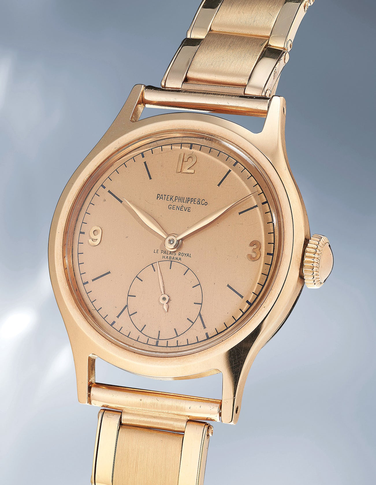 A highly rare and attractive pink gold wristwatch with pink dial and bracelet