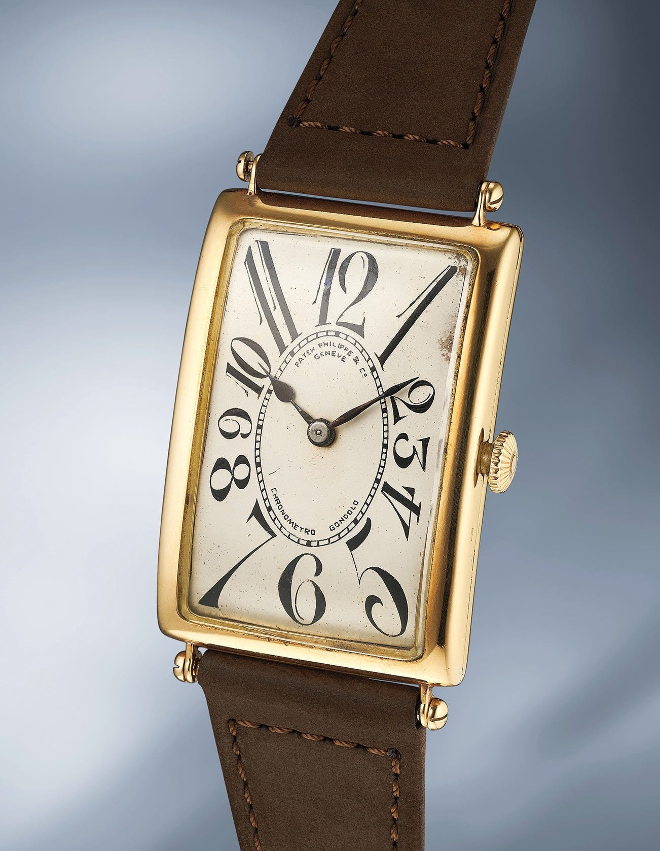 The present watch with its large Art Deco numerals is part of a series of watches made in 1913 and sold to Gondolo between 1922 and 1924. Only seven watches within this series are known, two of which are now showcased in the Patek Philippe museum.