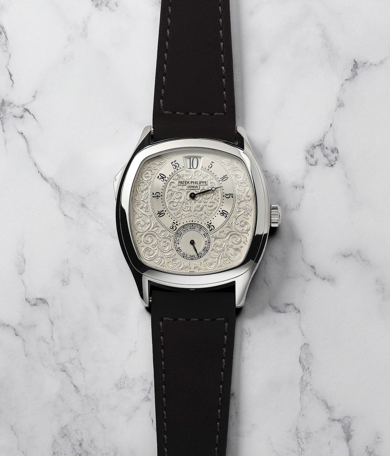 The present example is fresh to the market and preserved in like-new condition. The reference 5275P is known for its grand and crisp chiming mechanism, which is perfectly synchronised to the time. Accompanied with certificate of origin, commemorative medal, attestation and presentation box, the watch is a wonderful tribute to the brand and their excellence in movement design and manufacture.