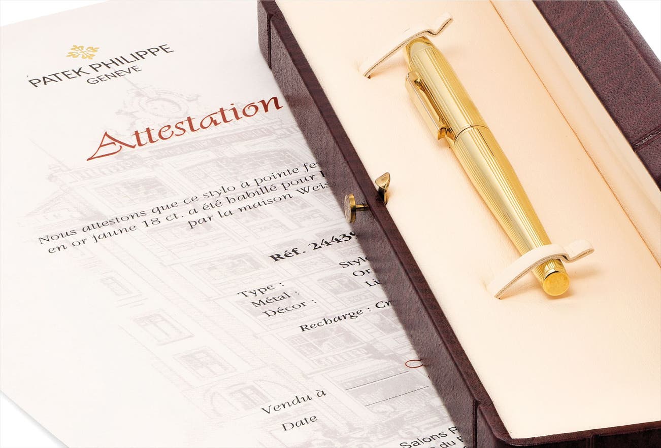 A fine and possibly unique yellow gold fibertip pen with Attestation and fitted presentation box