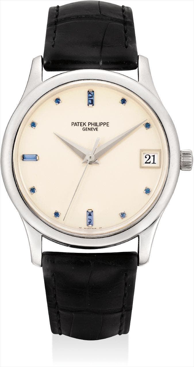 A fine and rare platinum and sapphire-set wristwatch with sweep centre seconds and date