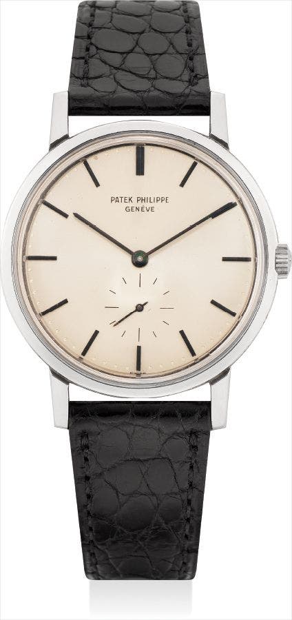 The present calatrava model with subsidiary seconds, reference 3466, is such an example. Offered in crisp and original condition, the present watch still retains sharp finishes to both the case and the lugs even fifty years after its production.