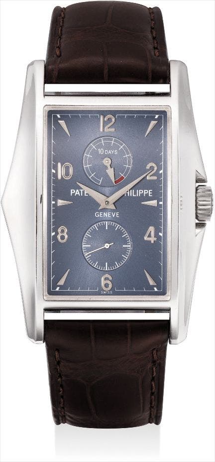 Patek Philippe decided to commemorate the turn of the third Millennium in the year 2001 by producing the limited edition reference 5100 and using the company's first ever ten-day movement. The molds used to create these ‘Manta Ray’ cases were deliberately rendered unusable when the limited edition series was completed to ensure no future examples could be manufactured.