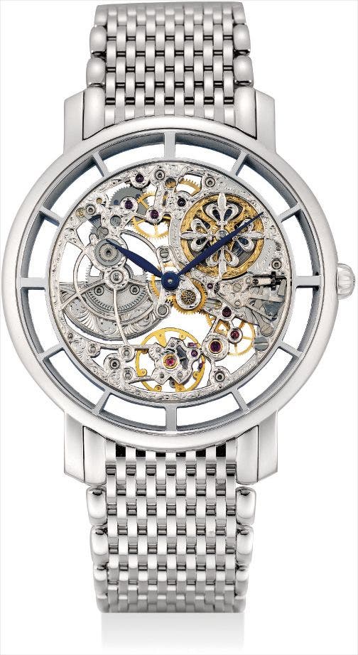 A fine and rare white gold skeletonised bracelet watch with original certificate and fitted presentation box