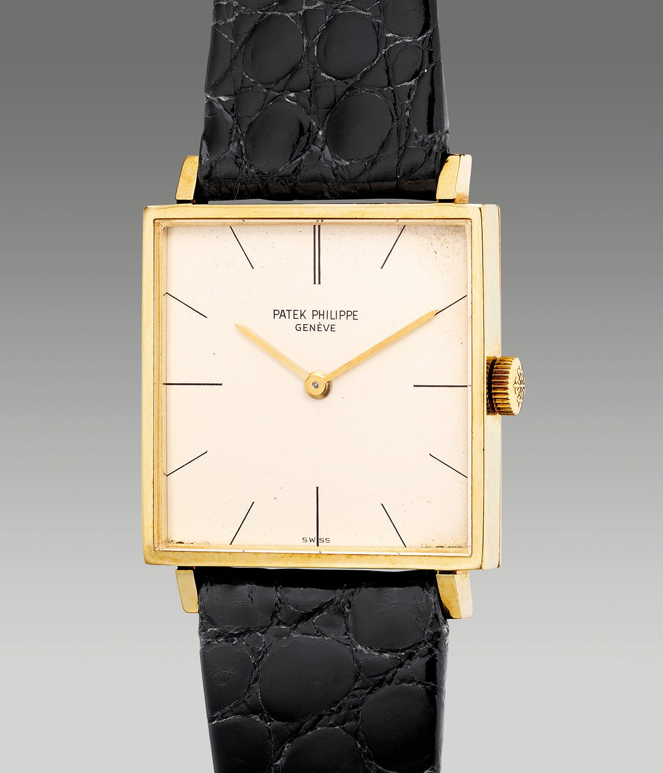 The present example in yellow gold with thinly painted indexes is offered with the original Patek Philippe Certificate of Origin and a Patek Philippe Extract from the Archives confirming its black painted indexes from 1967.