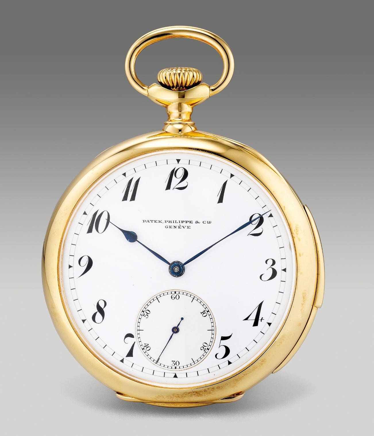 The present yellow gold minute repeating pocket watch by Patek Philippe featuring a desirable white enamel dial with painted Breguet numerals is a perfect example of the quality craftsmanship of the famed manufacturer. Generating a loud and high pitched chime, it is powered by the cal. 19”’, Victorin Piguet & Cie ebauche, rhodium plated movement with a straight line lever escapement.