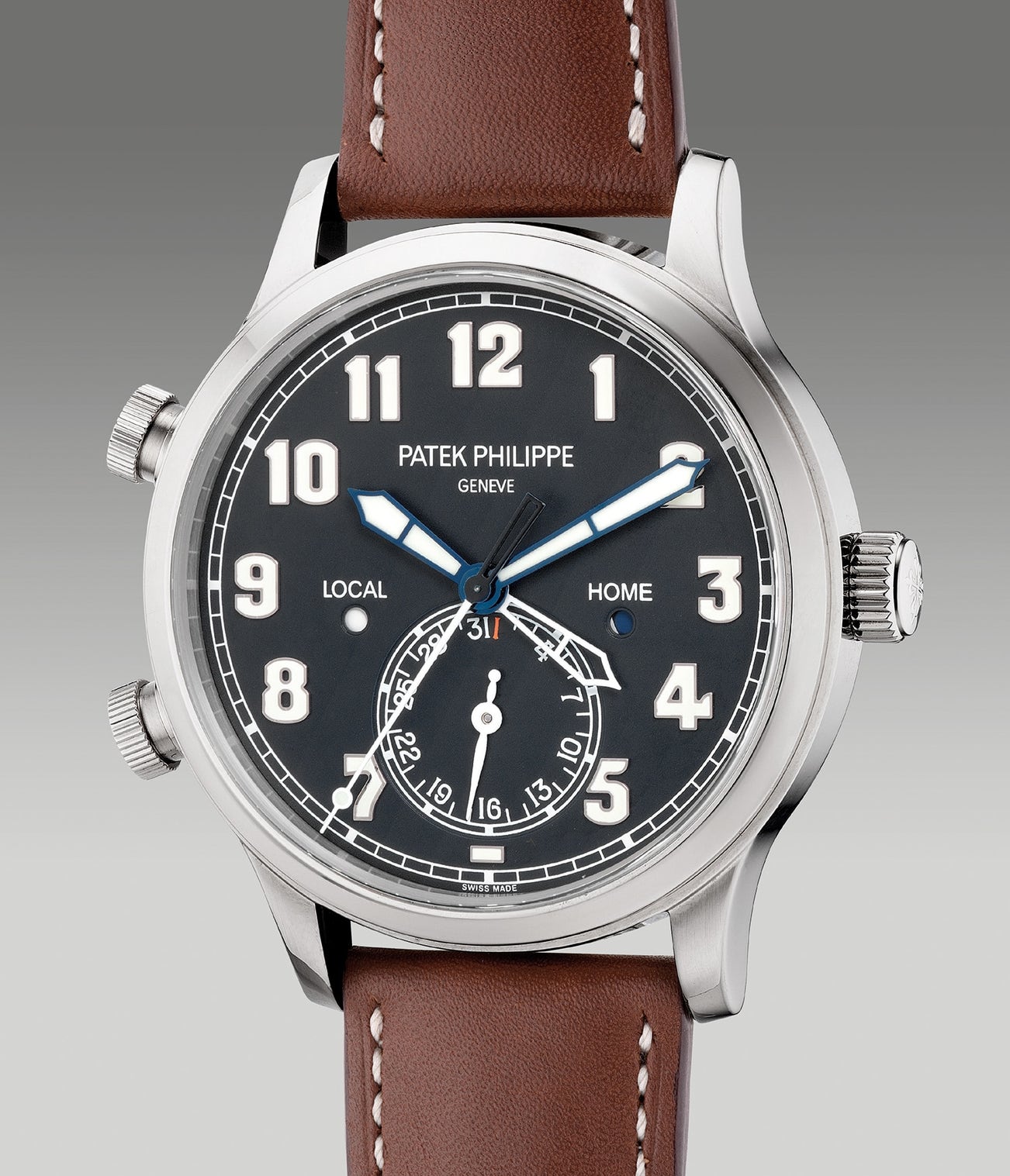 A fine and attractive white gold dual-time pilot’s wristwatch with date, day and night indication, Certificate of Origin and presentation box