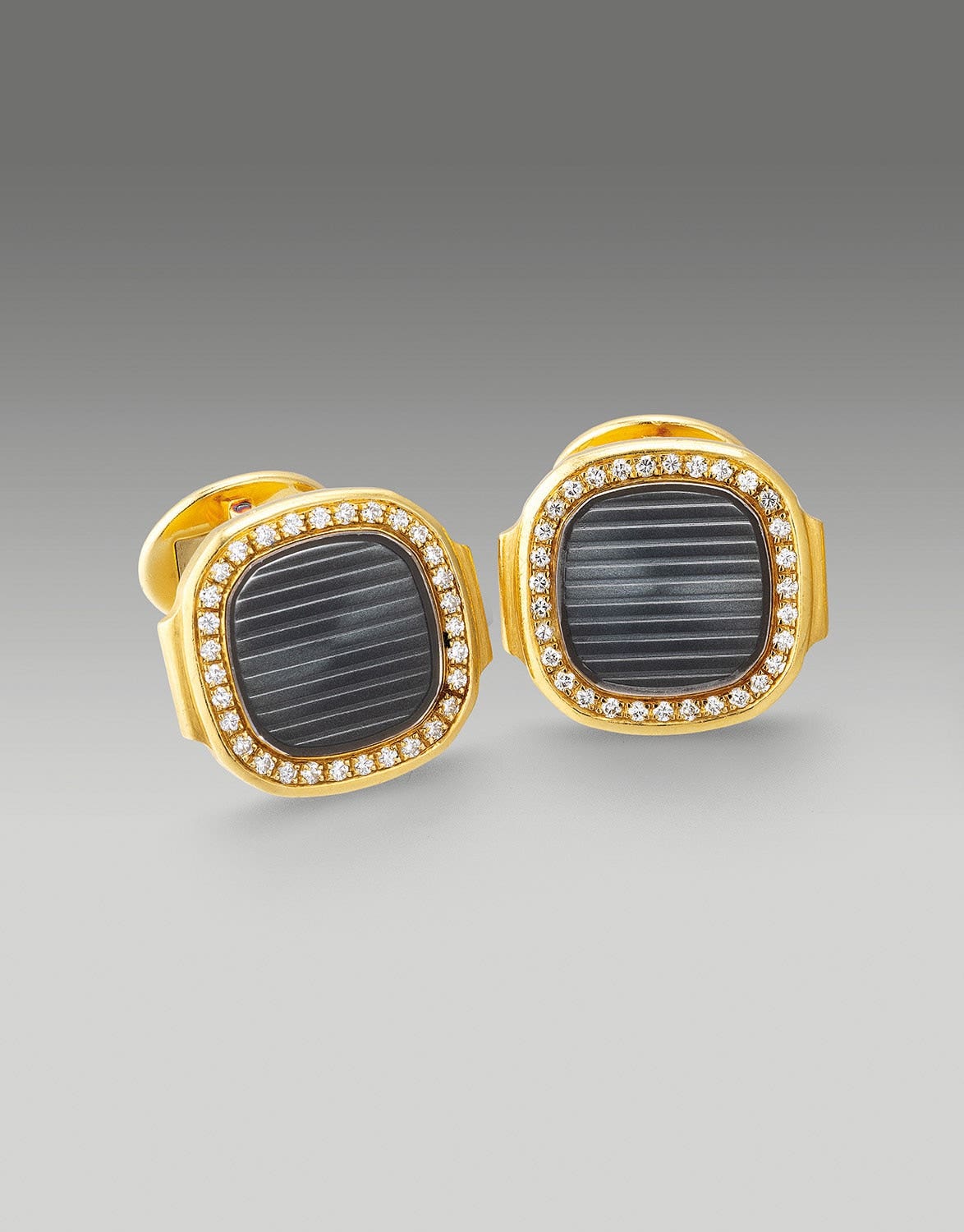An exquisite pair of yellow gold, sapphire crystal and diamond-set cufflinks