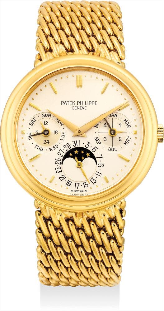 Well-known for the Graves Supercomplication — a highly complicated pocket watch that was the world’s most complicated watch for 50 years — this family-owned brand has earned a reputation of excellence around the world. Patek's complicated vintage watches hold the highest number of world records for results achieved at auction compared with any other brand. For collectors, key models include the reference 1518, the world's first serially produced perpetual calendar chronograph, and its successor, the reference 2499. Other famous models include perpetual calendars such as the ref. 1526, ref. 3448 and 3450, chronographs such as the reference 130, 530 and 1463, as well as reference 1436 and 1563 split seconds chronographs. Patek is also well-known for their classically styled, time-only "Calatrava" dress watches, and the "Nautilus," an iconic luxury sports watch first introduced in 1976 as the reference 3700 that is still in production today.