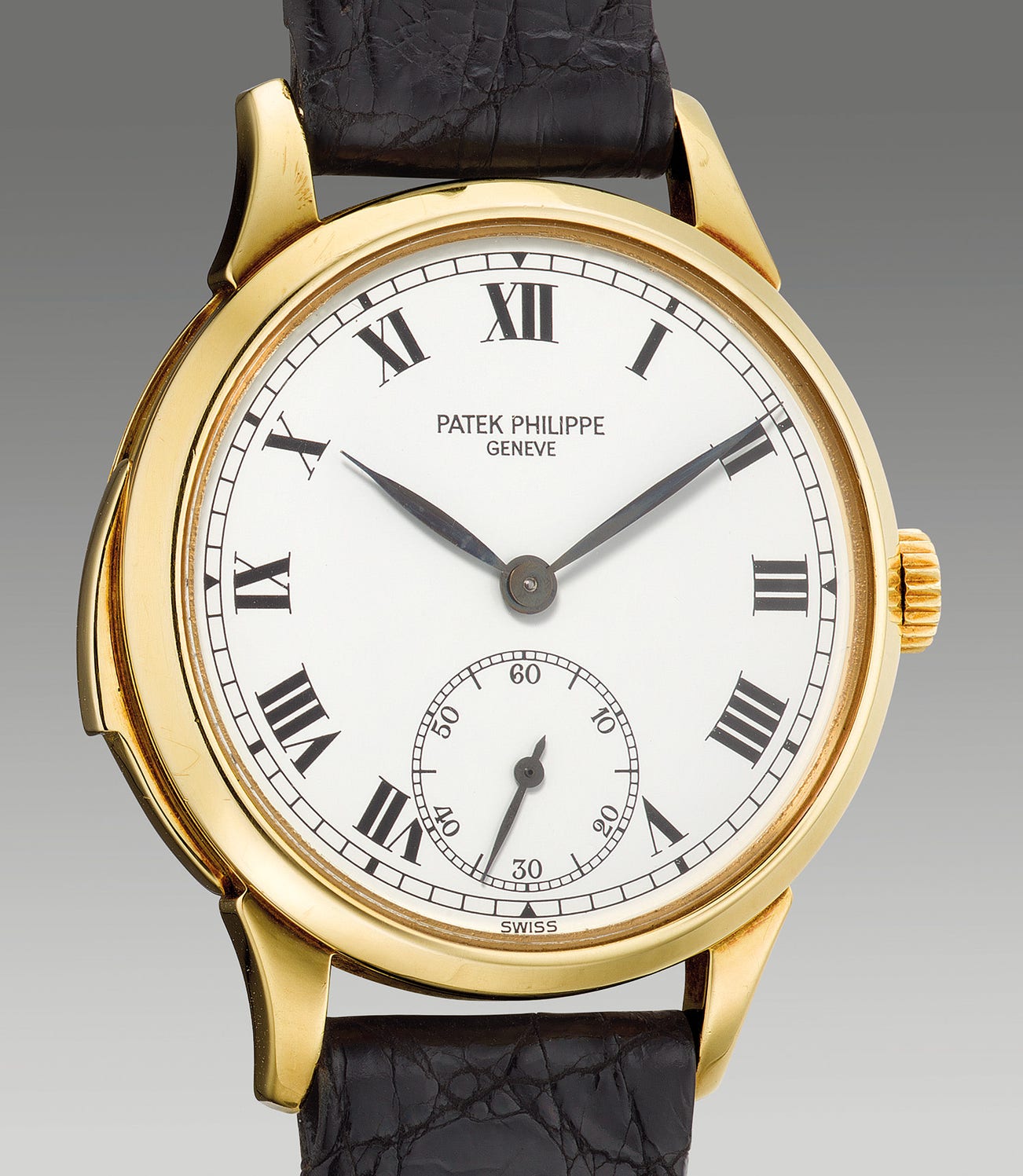 Encased in an elegant 33mm diameter round-shaped case with fancy sculpted lugs, the ref. 3979 was released in 18K yellow gold (approximately 100 examples made), white and pink gold (approximately a dozen examples made combined) and platinum (approximately a dozen examples made). Early examples of the reference featured cases made by master casemaker Jean-Pierre Hagmann featuring his initials “JHP” stamped inside the solid caseback. Later examples featured cases made by Geneva-based casemaker Atelier Reunis.