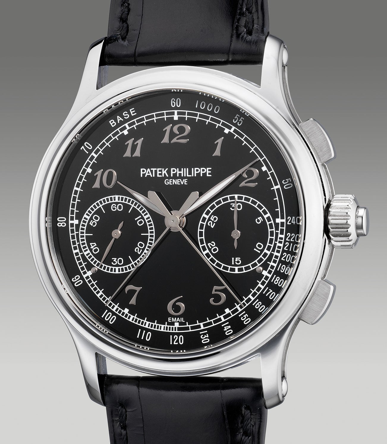Encased only in platinum and previously only made available with a black enamel dial, Patek Philippe launched the new ref. 5370P-011 in 2020 with a never seen before blue enamel dial replacing the first iteration of the reference in black. Manufactured in low numbers, the ref. 5370P-001 with a black enamel dial will go down in history being the very first reference to feature the firm’s first in-house split seconds chronograph caliber. With an established and important heritage in manufacturing some of the world’s most impressive chronograph timepieces, any split seconds chronograph manufactured by Patek Philippe is a masterpiece to acquire.