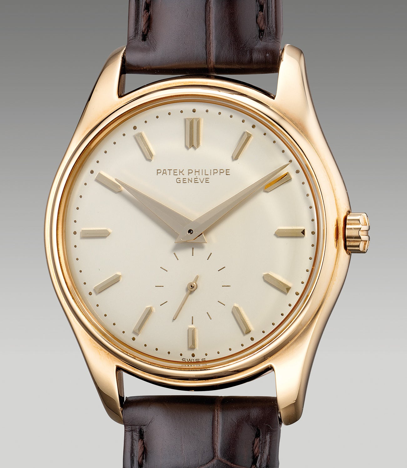 The present example Patek Philippe ref. 2526 in yellow gold from the second series features case and movement numbers that are consistent with examples from the respective series. Featuring an off-white enamel dial with shorter index at 6 o’clock and a domed screw-down caseback topping it off with its original forged “double P” crown, the present example is attractive and fresh-to-the-market. A must-have reference for vintage connoisseurs.