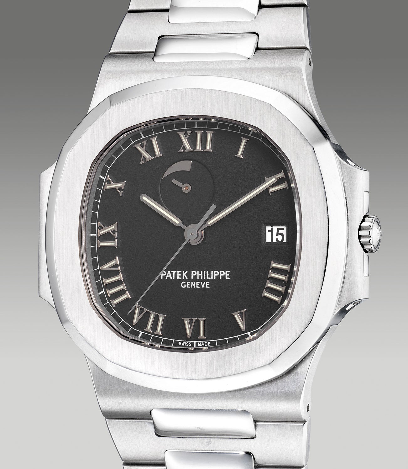 Through the 1980s and early 1990s, Patek Philippe experimented with case materials, sizes, and dial designs upon the time and date only appearance. This began to change in the historical timeline of the reference in the introduction of the present ref. 3710 in 1998. Remained in production until 2005, the ref. 3710 was the first to include the display of the power reserve below the 12 o’clock hour marker. Dubbed by collectors as the “comet tail”, the “tail” being placed on a rotating disc and once the movement fully wound the disc would continue rotating, indicating that the winding mechanism was disconnected from the main barrel. Modestly sized at the same 42mm diameter as the very first Jumbo Nautilus, the ref. 3710 sports in a black attire with applied luminous Roman numerals with luminous that gives the model extra personality amongst its siblings.