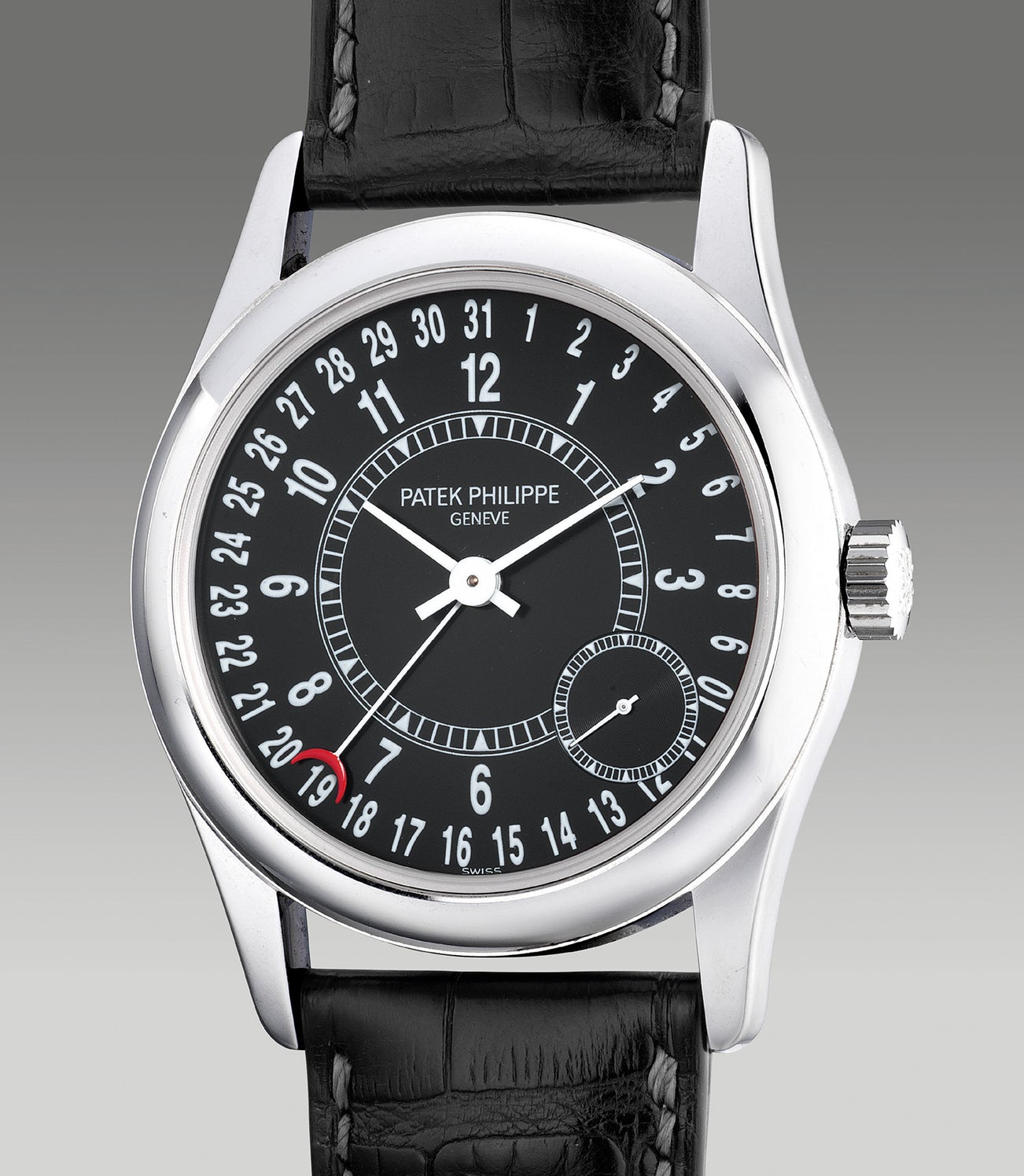 Taking a heavy influence from the Calatrava ref. 5000 from the 90s, the off-centered small seconds and inner chapter ring sets the stage as an attractive blue print of the ref. 6000. Introduced in 2005, the Calatrava ref. 6000 was first fitted with a glossy black dial and encased in white gold. Other iterations were launched, featuring various case materials such as pink gold and various dial colours such as grey, brown and blue. Boasting incredible charm featuring a red-tipped crescent hand, the date of the month can be read at a glance. Proportioned in a 37mm diameter white gold case and fitted with the thin micro-rotor calibre 240, the Calatrava wears snug on the wrist with comfort.