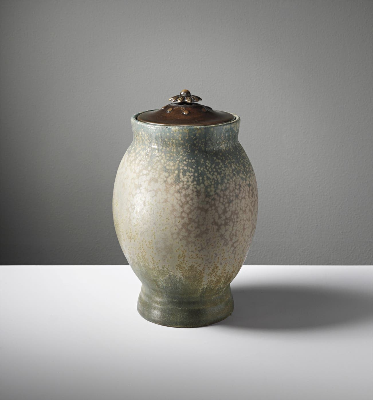 Produced by Royal Copenhagen, Denmark. Lid produced by Knud Andersen, Denmark. Painted under the glaze with blue wave mark, PN/18-11/1920/II and lid impressed Royal Copenhagen Crown, three waves, 18 11 20/2.