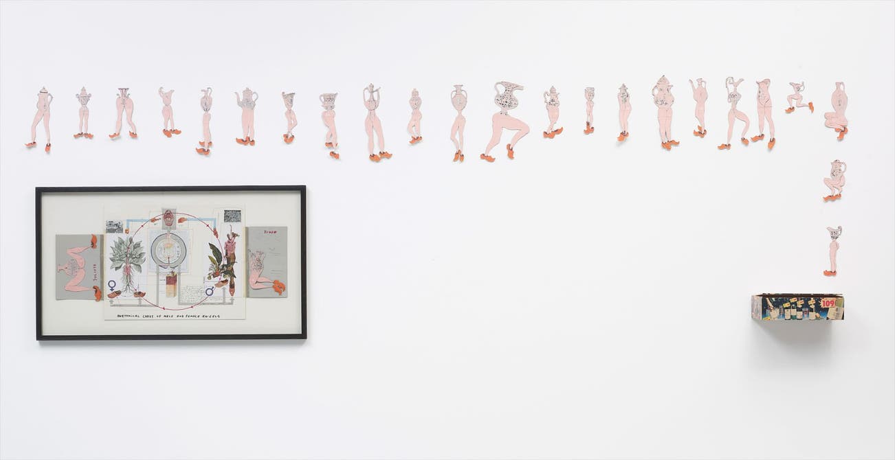 gouache, ballpoint pen, felt-tip pen, adhesive tape, magazine image, collage on paper and card, cigar box