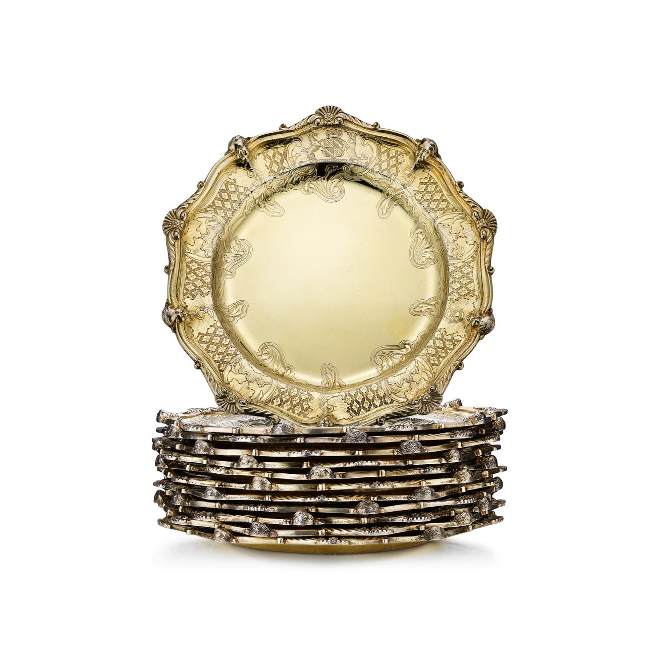 Set of twelve silver-gilt dessert plates, 1746-1747
