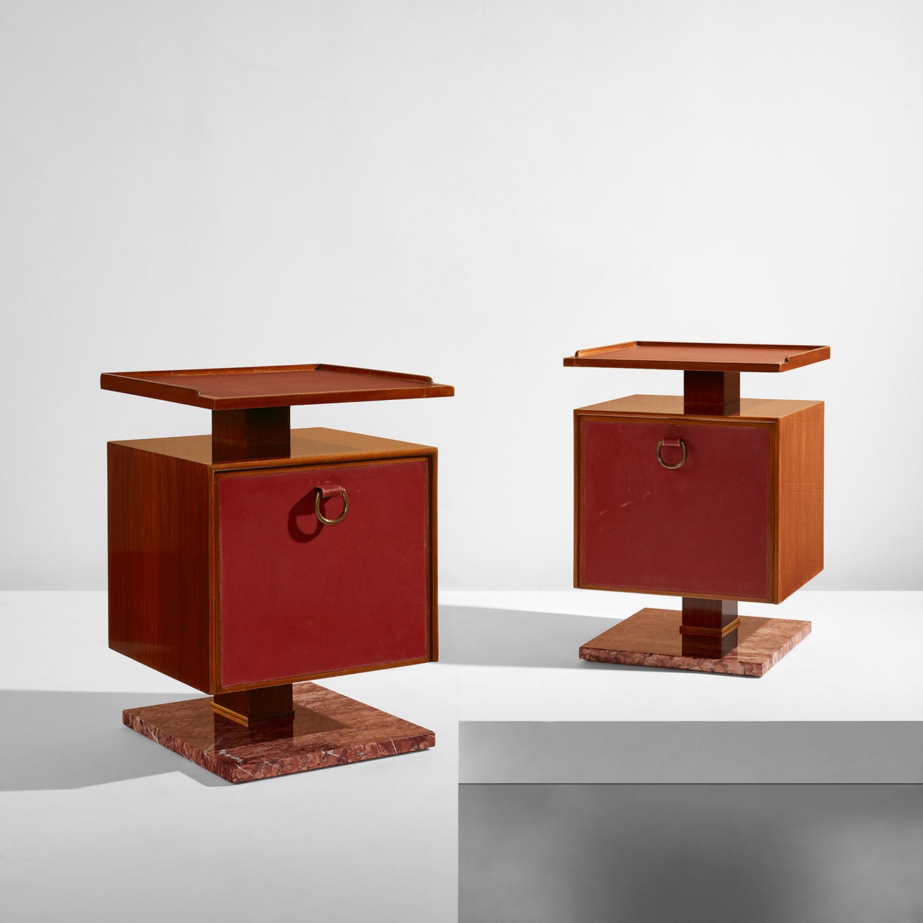 Mahogany-veneered wood, mahogany, brass, leather, marble.