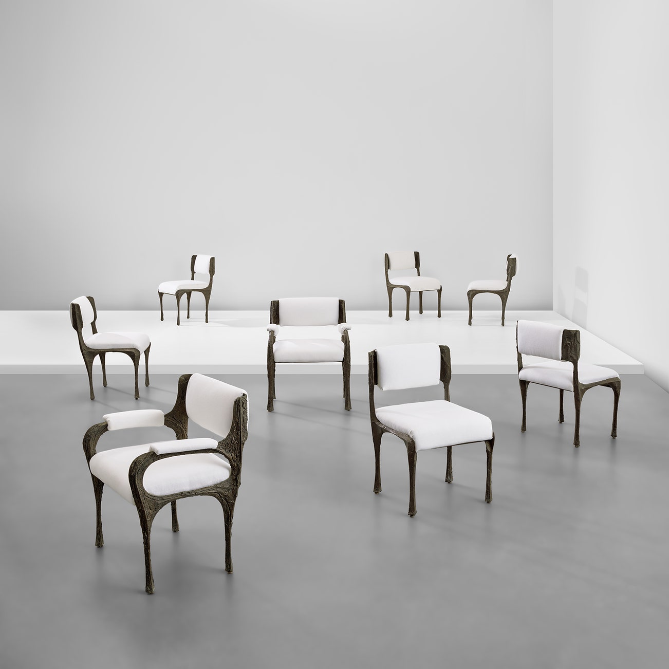 Set of six chairs, model no. PE-106 and two armchairs, model no. PE-105